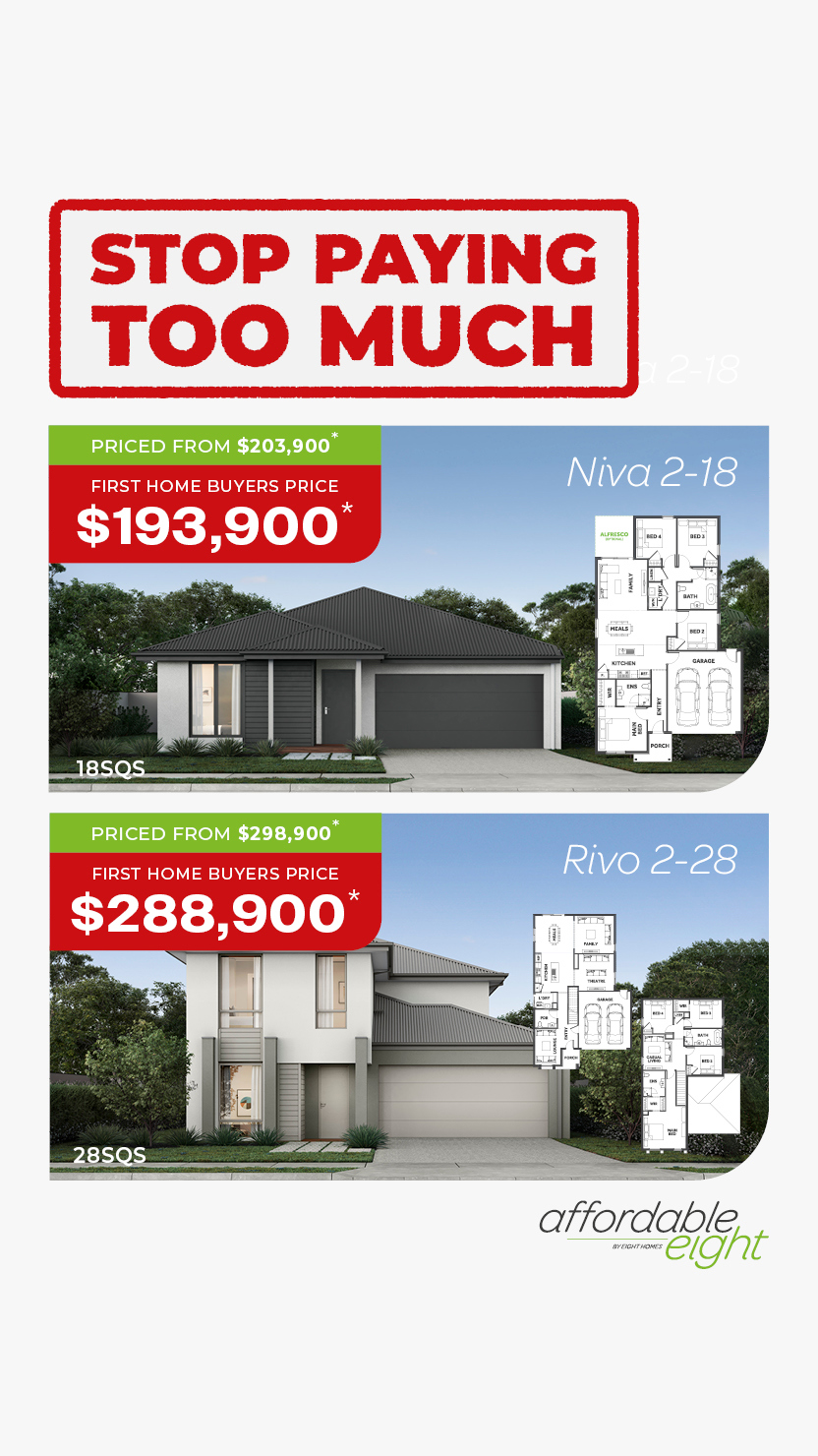 A range of double storey homes for those looking for more space and liveability in a larger home whilst still enjoying the easy process and great value offered by Eight Homes.