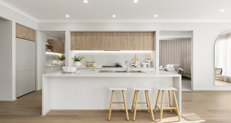 Enjoy the luxury and convenience that the Evoke has to offer. From the moment you step foot into this stunning double storey home, it’s clear that it was made for entertaining, convenience and enjoyment. Three living areas stretched across two storeys, as well as the added benefit of a central contemporary kitchen with a large walk-in pantry, makes the Evoke range perfect for both entertaining guests and everyday living.