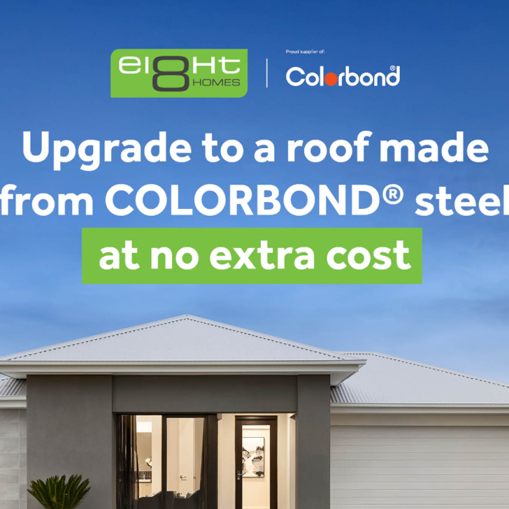 By simply choosing Eight Homes, you can upgrade to a roof made from Colorbond® steel at no extra cost.